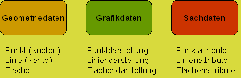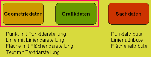 Die Kombination von Geometrie-, Grafik- und Sachdaten bilden das Geo-Objekt. Grundsätzlich gibt es zwei dazugehörende